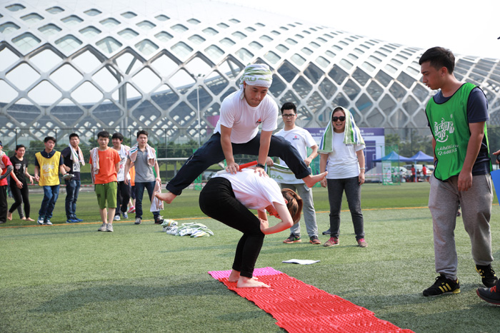 运动会共设置了5个项目,分别为考验运动能力的“奔跑吧!”、考验团队协作与智慧的“智慧汉诺塔”、“梦想起航”和强调团队合作能力的“龟兔赛跑”、“新铁人三项”。